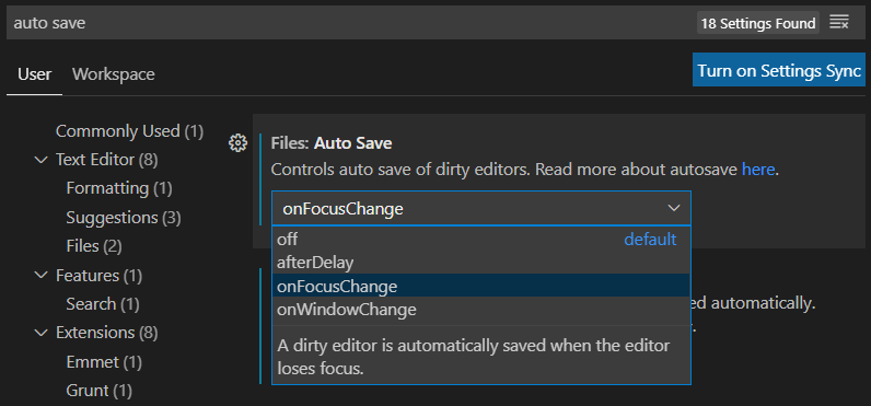 - onFocusChange : vscode의 현재 탭 이외의 곳을 클릭하면 저장됨