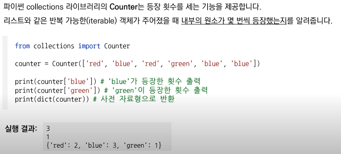 - 사전, 집합 자료형은 순서가 없기 때문에 key/원소 를 이용해 O(1)의 시간 복잡도로 조회 가능